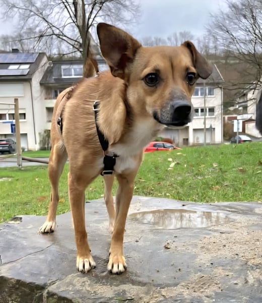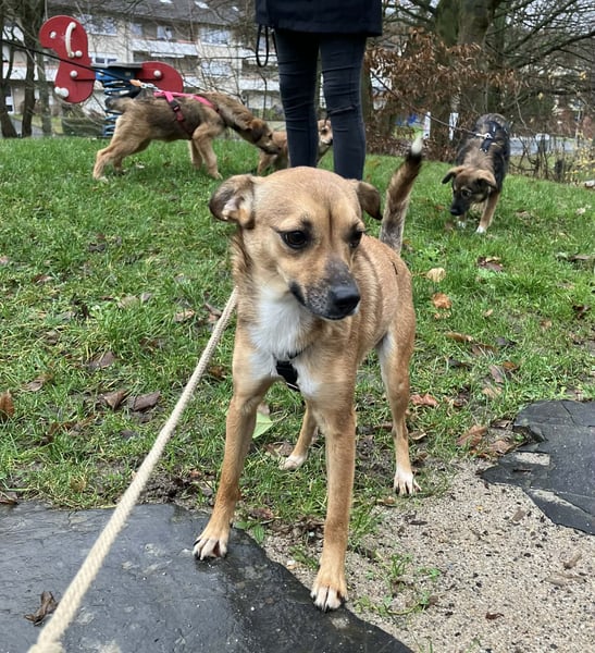 Seit ein paar Tagen erst ist Rose auf ihrer Pflegestelle in Iserlohn. Sie zeigt sich bei neuen Menschen einen ganz winzigen Moment zurückhaltend, sucht dann aber sofort Nähe und liebt Körperkontakt. Rosé kennt schon eine Leine und scheint auch weitestgehend schon stubenrein zu sein. Sie kommt mit allen Menschen und auch anderen Hunden super klar. Große, stürmische Hunde sind erst mal unheimlich, kein Wunder - wie schnell kommt man da unter die Räder wenn man so zart ist.