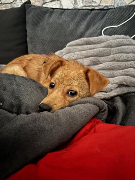 Die kleine Merry wurde zusammen mit ihrer Mutter Minou bei eisigen Temperaturen im Februar auf der Straße in Rumänien gefunden. Wie die beiden Hündinnen dort hin kamen wissen wir nicht. Sicher war jedoch, dass sie beide bei massiven Minusgraden kaum eine Chance gehabt hätten den Winter dort draußen ohne Nahrung und Dach über dem Kopf zu überstehen. So bat ein tierlieber Mensch unsere Gabriela um Hilfe. Gabriela fand eine Möglichkeit die beiden bei einer Freundin unterzubringen bis alle nötigen Impfungen und Tierarztbesuche für die Ausreise erledigt waren.