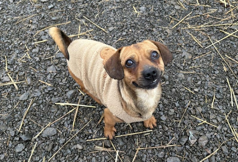 Er ist ein absoluter kleiner Sonnenschein. Er ist winzig und wenn man ihn da so zerbrechlich mit seinem kleinen Pullover sieht, möchte man ihn am Liebsten direkt mitnehmen.