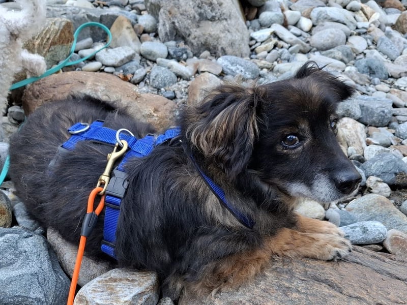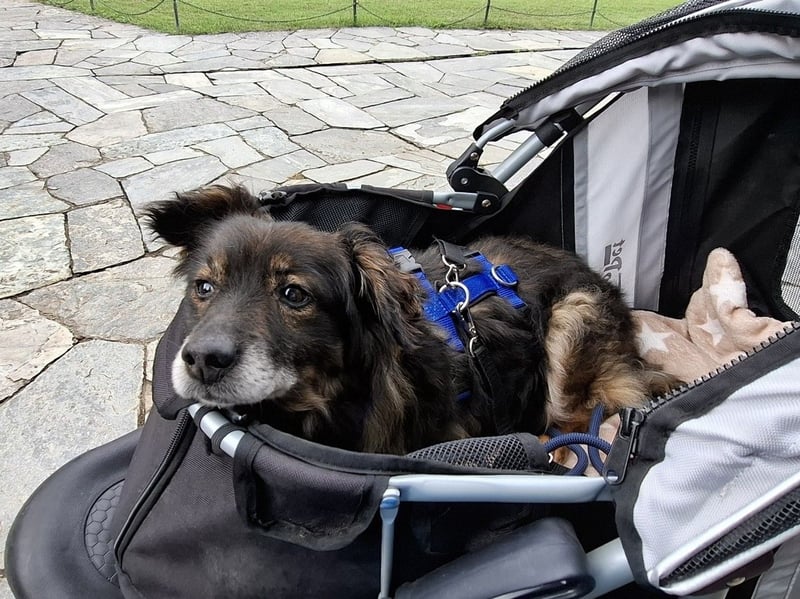 Frodo geht gerne kleiner Runden (30-60 Minuten) spazieren. Er hat Arthrose im Ellenbogen, daher humpelt er ab und zu. Er ist an Hundebuggy und auch Hunderucksack gewöhnt, sodass man ihn auch gut auf längere Runden mitnehmen kann. Im Café oder Restaurant weiß er sich zu benehmen. Seine Devise ist, Hauptsache dabei sein.