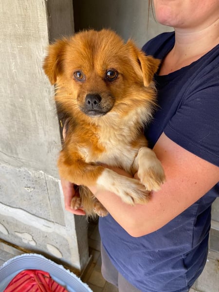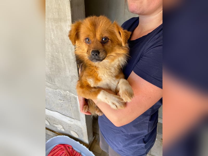 Pumpkin ist eine agile junge Hündin, die durch die Eindrücke im Streunerdorf und den Transport noch ein bisschen eingeschüchtert ist. Seit dem zweiten Aprilwochenende lebt sie nun in einer Pflegestelle in Krefeld. Nachdem sie in der Nähe von Menschen zunächst in jeder Ecke Schutz gesucht hat, traut sie sich inzwischen schon öfter aus ihrer Deckung. Diese positive Entwicklung ist auch der freundlichen Carli zu verdanken, die Pumpkin das Vertrautwerden mit der Umgebung spürbar erleichtert.