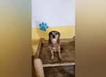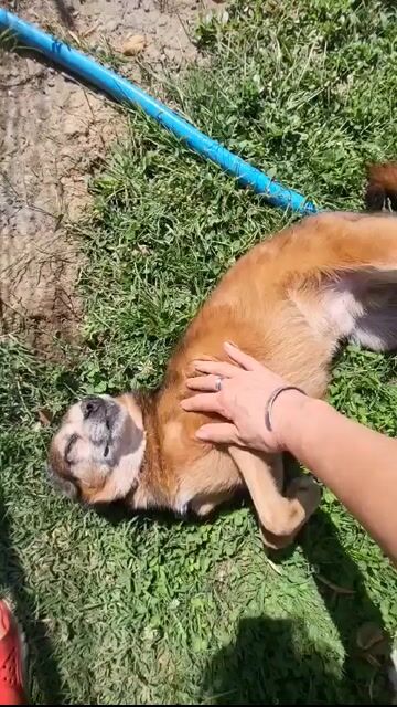 Leider hatte Bobby, bevor er gefunden wurde, einen Unfall und humpelt seitdem, kommt aber gut damit zurecht und zeigt keine Einschränkungen.