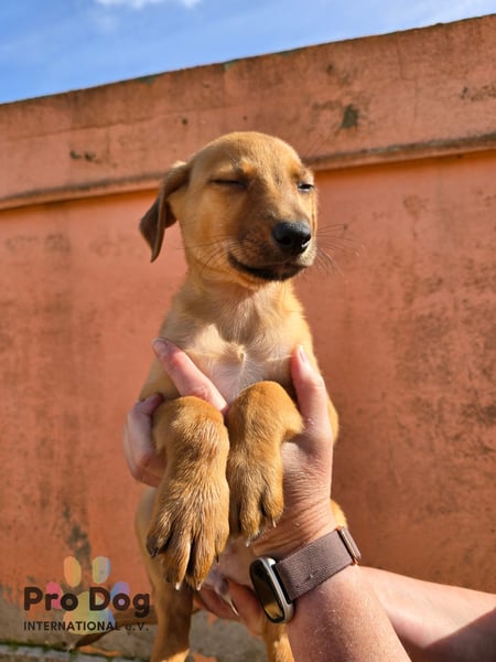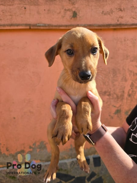 Unser zuckersüßer Bruno ist einer von 5 Geschwistern und befindet sich mit seiner Mama im Shelter. Bruno zeigt sich zum jetzigen Zeitpunkt total welpentypisch und erkundet seine Welt. Bruno’s Charakter wird sich natürlich in den nächsten Monaten noch weiter ausbilden. Wir schätzen, dass Bruno eine Endgröße von ca. 40 bis 50 cm erreichen wird. Bruno wäre im Januar 2026 Ausreise fertig.