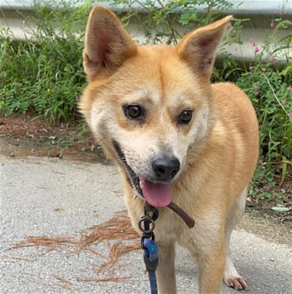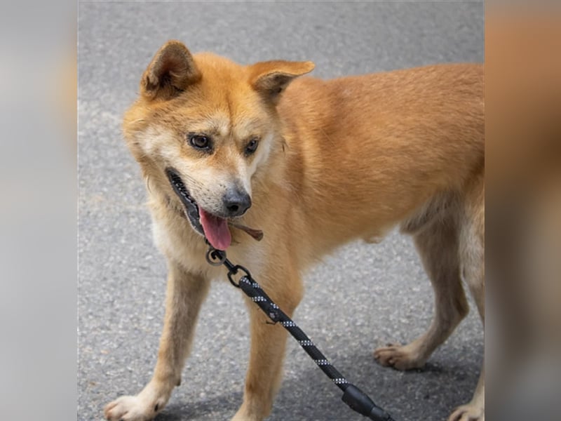 Lotshi ist eine kleine männliche Mischung aus Jindo und einer anderen Rassen. Er befindet sich seit 2020 im Tierheim.