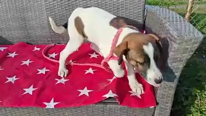 Lexa ist welpentypisch verspielt, neugierig und erkundet gerne die Welt. Sie wird voraussichtlich mittelgroß (ca. 55 cm). Menschen gegenüber ist sie anfangs etwas zurückhaltend, taut aber nach kurzer Zeit auf und zeigt sich dann lieb, tollpatschig und verschmust.