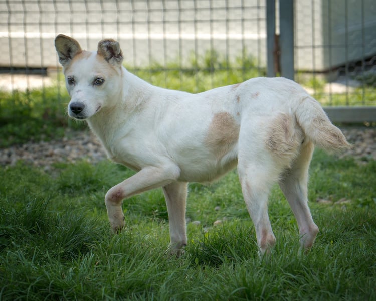 Anela war auf der Straße, die zu unserem Tierheim von Animal Life führt, als einige Kolleginnen dorthin unterwegs waren. Sie hielten an und zuerst wirkte sie wie ein Hund, der sich nicht einfangen lassen würde – scheu, auf Abstand. Doch dann geschah etwas Unerwartetes: Sie näherte sich vorsichtig einer unserer Kolleginnen. Was wir sahen, war erschütternd – Anela war abgemagert bis auf die Knochen. So etwas sieht man selten. Wir glauben, dass sie lange Zeit an einer Kette gehalten, stark vernachlässigt, vielleicht sogar misshandelt und schließlich ausgesetzt wurde. Die Spuren dieses Leids trägt sie bis heute an ihrem Körper. Anela ist vorsichtig und ängstlich gegenüber Neuem, aber sie sehnt sich nach Nähe. Wenn sie einmal Vertrauen gefasst hat, sucht sie den Blickkontakt und kommt sanft für ein bisschen Zuneigung. Sie versteht sich gut mit anderen Hunden, ist sehr brav, geht gut an der Leine und zeigt in entspannter Umgebung große Lebensfreude.