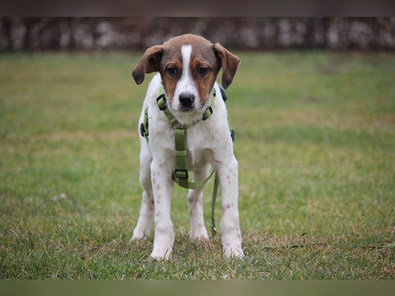 Unser zauberhafter Delino hatte keinen leichten Start ins Leben – wir konnten ihn glücklicherweise retten und ihm damit eine zweite Chance schenken. Jetzt sucht er liebevolle Menschen, die ihr Herz für ihn öffnen und ihm zeigen, wie schön das Leben sein kann. Delino wurde im Juli 2025 geboren und ist aktuell etwa 38 cm groß – ein paar Zentimeter werden wohl noch hinzukommen, er wird also später zu den mittelgroßen Rüden gehören. Der süße Kerl ist ein sehr sanfter und freundlicher Hund, der einfach nur gefallen möchte. Mit anderen Hunden versteht er sich wunderbar und auch mit Katzen gibt es keinerlei Probleme. Kinder dürfen in seinem neuen Zuhause gern leben – am besten schon etwas größer und mit einem liebevollen, respektvollen Umgang mit Tieren. Delino liebt es, in der Natur unterwegs zu sein, durch Wiesen und Wälder zu spazieren und gemeinsam Neues zu entdecken. Er ist neugierig, aufmerksam, jedoch noch etwas vorsichtig und möchte mit Deiner Hilfe noch so viel lernen. Das Hunde-1×1 und vielleicht auch der Besuch einer Hundeschule stehen auf seiner Wunschliste ganz weit oben – wichtig sind Menschen, die ihm Zeit geben und in seinem Tempo mit ihm lernen. Jetzt fehlt ihm nur noch eines: ein Zuhause, in dem er ankommen darf, Geborgenheit spürt und endlich Teil einer Familie wird. Wenn Du Dir vorstellen kannst, mit Delino durchs Leben zu gehen, gemeinsam zu wachsen und viele schöne Abenteuer zu erleben, dann melde Dich – Ihr werdet bestimmt ein wundervolles Team.
