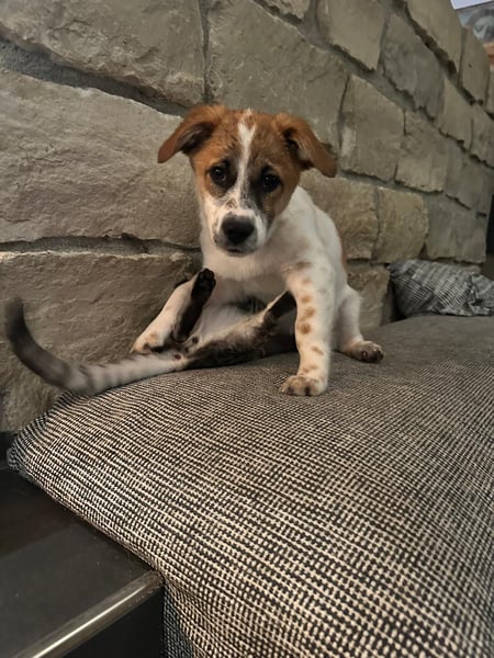 Er verträgt sich wunderbar mit der Katze auf seiner Pflegestelle und mit anderen Hunden hat er ebenfalls keinerlei Probleme.