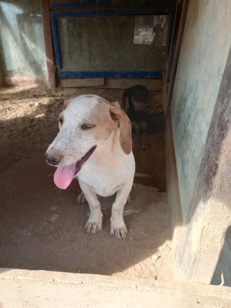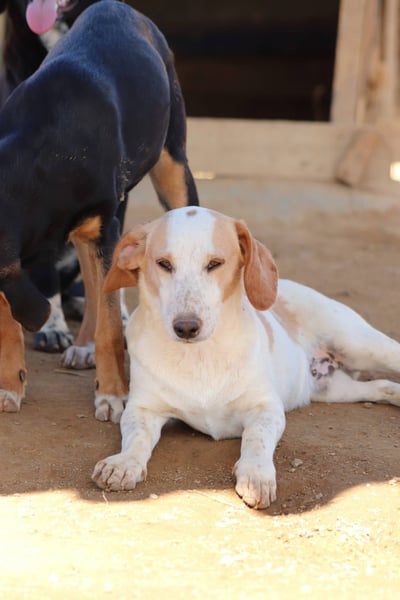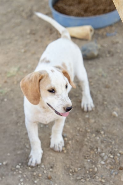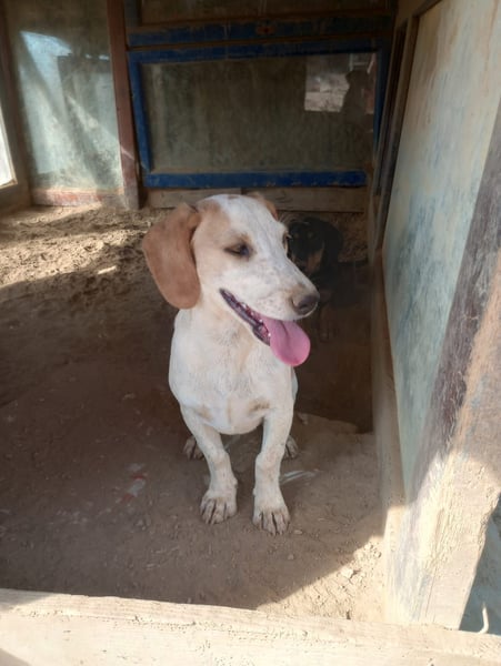 Pablo ist vermutlich ein Jagdhund-Mix und wird später voraussichtlich etwa 15 kg wiegen. Da seine Eltern nicht bekannt sind, ist die genaue Größe schwer einzuschätzen – sicher ist aber, dass in Pablo ein fröhliches, liebevolles und kluges Hundekind steckt.