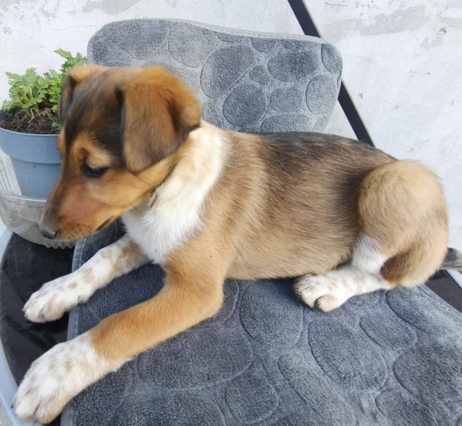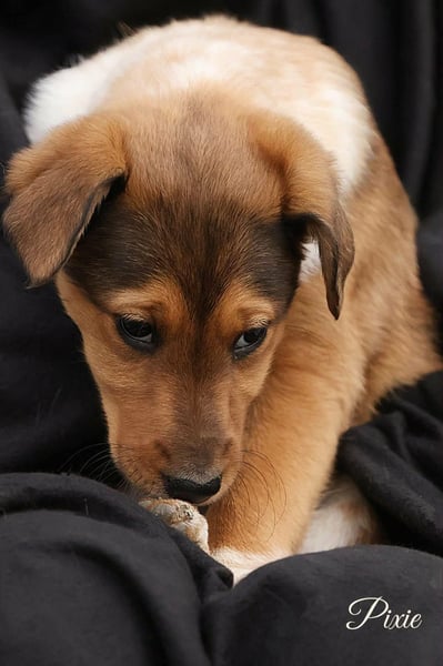 Pixie ist eins der sieben Welpen, die Weihnachten 2025 in einem verlassenen Haus zur Welt kamen. Ihre Mutter Lisa (Jack Russell Mix) war wahrscheinlich hochträchtig ausgesetzt worden und hatte in der Ruine Schutz gesucht.