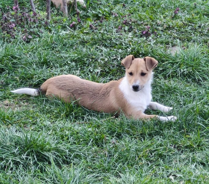 Lilly ist ein unbeschwertes Welpenmädchen, neugierig, verspielt und fröhlich. Sie lernt hier das Leben im Haus und in einer Familie.