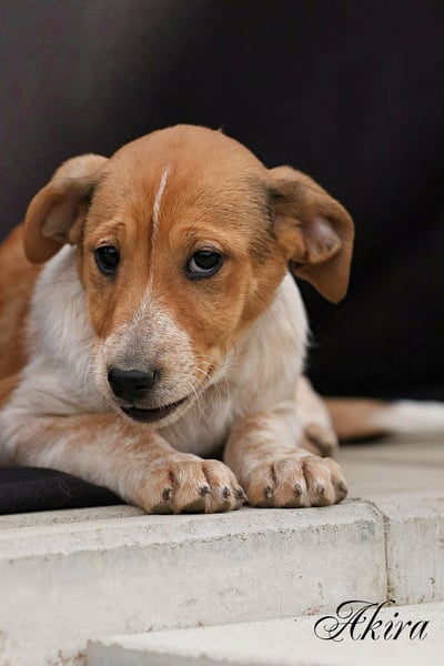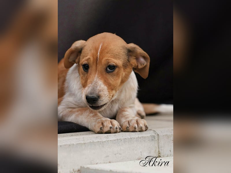 Akira ist eins der sieben Welpen, die Weihnachten 2025 in einem verlassenen Haus zur Welt kamen. Ihre Mutter Lisa (Jack Russell Mix) war wahrscheinlich hochträchtig ausgesetzt worden und hatte in der Ruine Schutz gesucht.