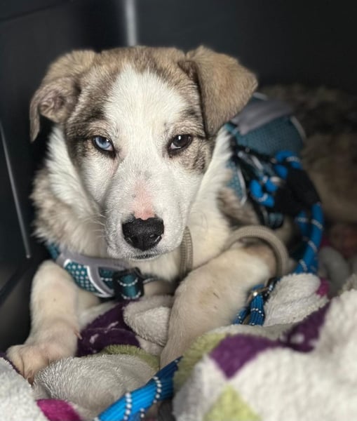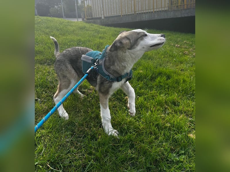 Sandi wurde in Rumänien geboren, in der Nähe eines rumänischen Skiresorts. Sie und ihre Geschwister saßen alleine bei Eiseskälte auf der Straße. Die Mutter war von Anwohnern vertrieben worden und so blieben die Kleinen schutzlos in der Kälte zurück. Tierschützer retteten die Kleinen vor dem Erfrieren und Sandi durfte Ende März nach Deutschland reisen. Sie wurde Mitte Oktober 2025 geboren, ist 37 cm hoch und wiegt 10 kg. Sandi ist welpentypisch verspielt und aktiv. Sie macht schon brav Sitz und ist total kinderlieb. Sandi hört gut auf ihren Namen und ist eine wirklich liebe Maus. Sie wurde auch bereits einem Tierarzt vorgestellt und ist topfit. Sandi hat ein blaues und ein normales Auge, wie es häufig bei Huskies vorkommt.