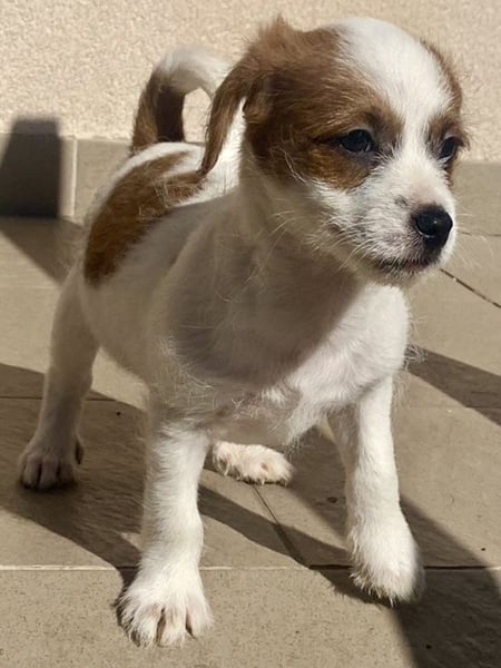 Charakter: Flou ist ein fröhlicher kleiner Rüde mit viel Lebensfreude. Er liebt es zu spielen, zu rennen und mit anderen Hunden herumzutoben. Menschen gegenüber zeigt er sich freundlich, neugierig und offen – typisch Welpe, einfach voller Freude am Leben.
