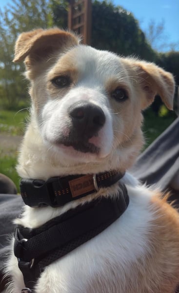 Der kleine Kerl ist gerne draußen unterwegs, entdeckt neugierig seine Umgebung und läuft für sein Alter schon recht ordentlich an der Leine. Dabei bringt er immer wieder seine lustige, charmante Art zum Vorschein – ein echter kleiner Clown, der seine Menschen zum Lachen bringt.