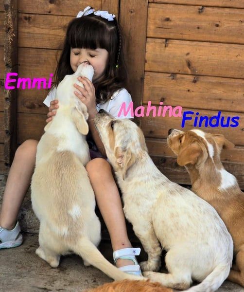 Emmi ist ein ganz bezaubernder Welpe, die zusammen mit ihren Geschwistern Findus und Mahina von Honey stammt. Honey wurde einsam und verlassen auf einem Feld gefunden, doch eine fürsorgliche Frau nahm sie auf, damit Honey in einem sicheren und liebevollen Zuhause ihre Babys zur Welt bringen konnte. Emmi ist ein anhängliches und freundliches kleines Mädchen. Sie liebt es, gestreichelt zu werden, und ist immer neugierig auf die Welt um sie herum. Mit ihrer fröhlichen Art bringt sie viel Freude in jeden Haushalt.
