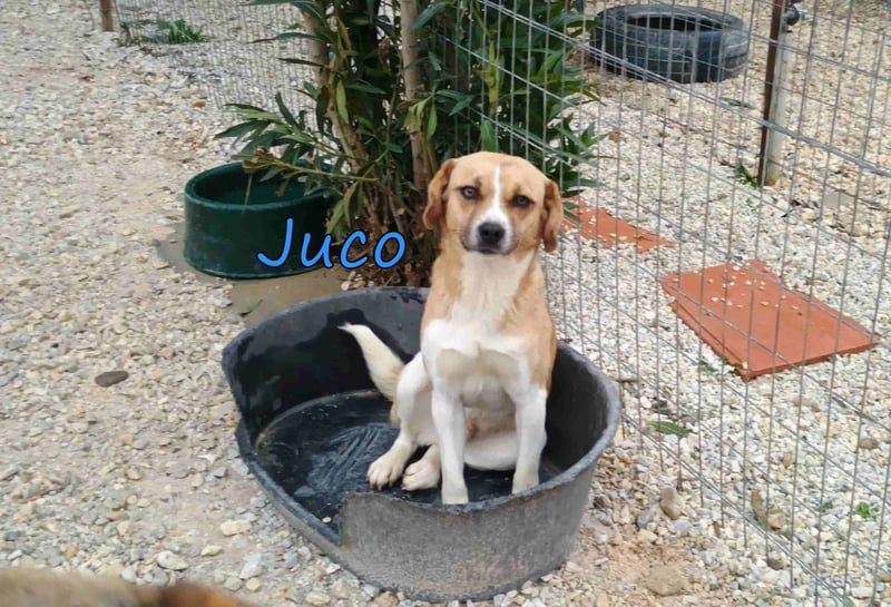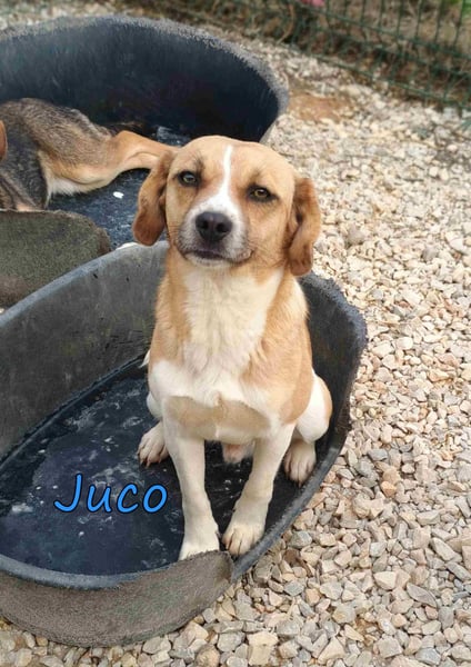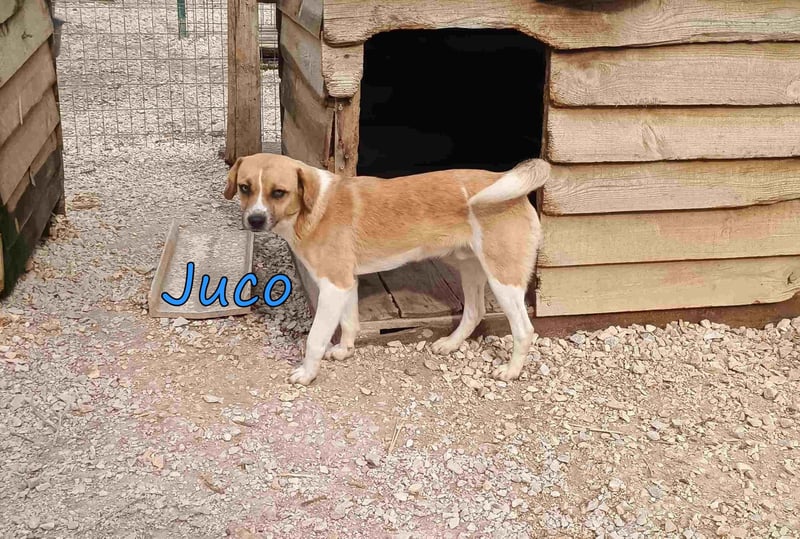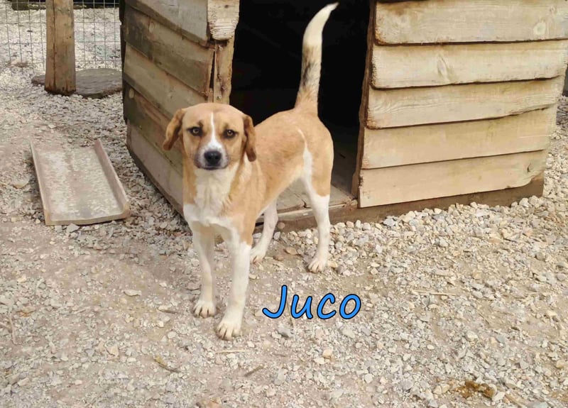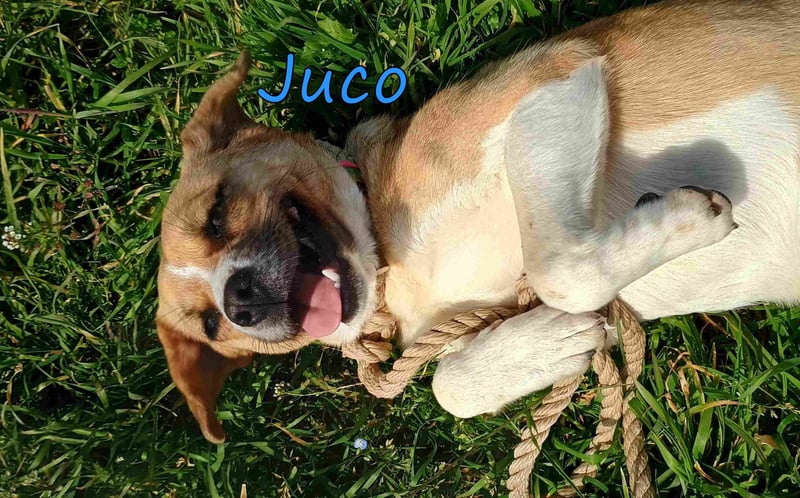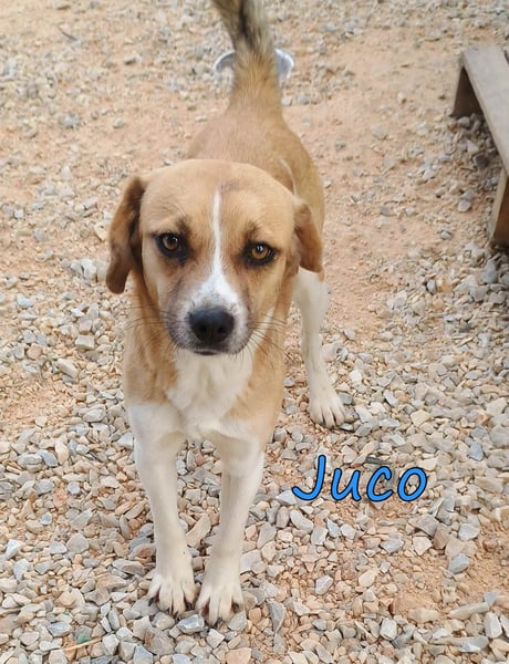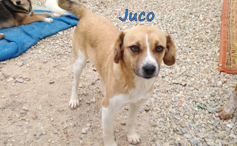 Juco wurde als Streuner in einem kleinen Dorf gefunden und in unser Tierheim gebracht. Dieser ruhige und liebenswerte Junge ist ein wahrer Schatz! Er ist sehr sozial und zeigt sich glücklich, wenn er in der Nähe von Menschen ist. Sein freundliches Wesen macht ihn zu einem angenehmen Begleiter, und er versteht sich hervorragend mit anderen Hunden. In letzter Zeit hat er angefangen, mit seinen Artgenossen zu spielen und seine Zeit im Tierheim zu genießen.