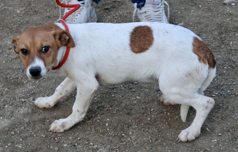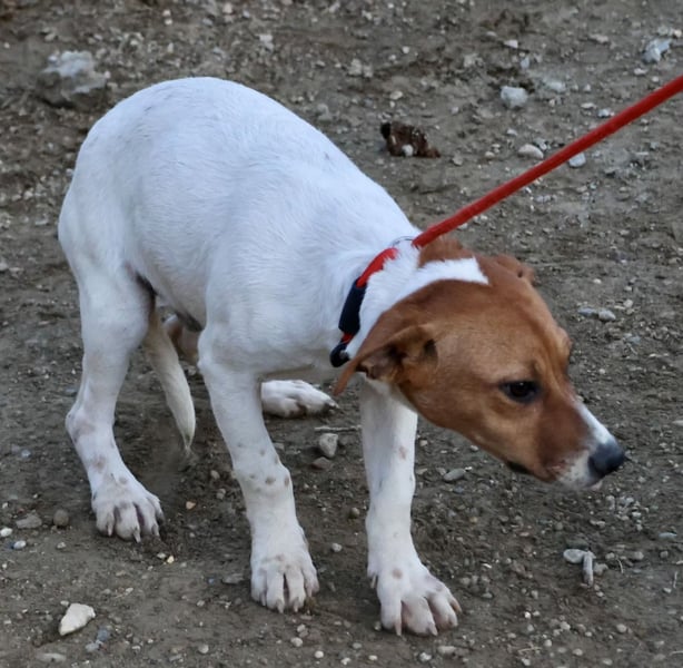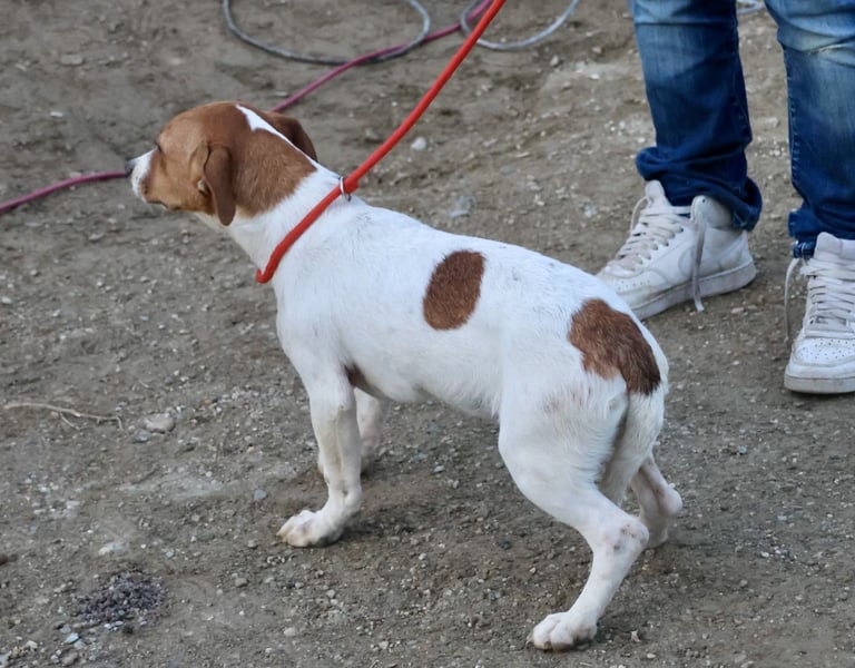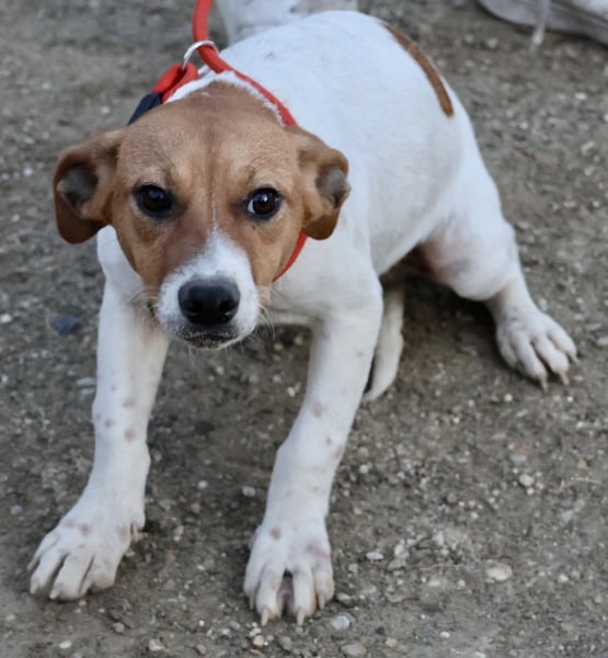 Atlas (4590) Mix Hündin, geb. am 10.07.2025, hat derzeit eine Schulterhöhe von 32 cm und wiegt 8 kg. Auf Grund ihres Alters ist Atlas noch nicht kastriert.