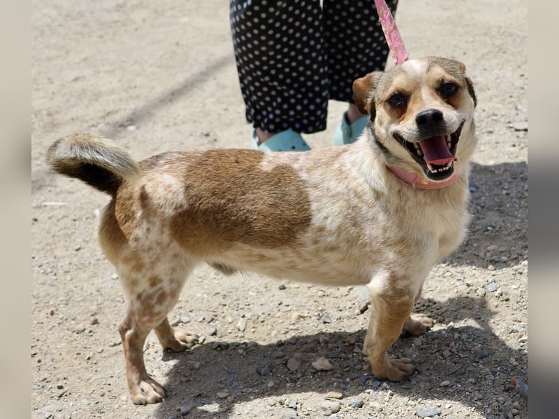 Sinatra (4480), Mix Rüde, geb.am 07.05.2022, hat eine Schulterhöhe von 26 cm und wiegt aktuell 8 kg.