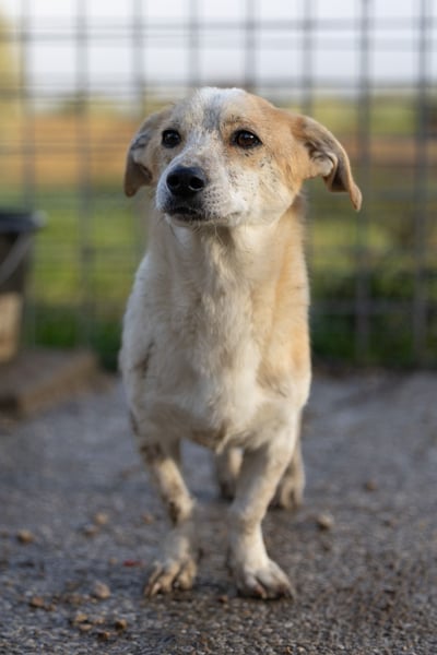 01/2026: Crodino ist ein freundlicher, mit Artgenossen verträglicher Rüde. In der Auffangstation lebt er in einem gemischten Rudel. Aufgrund seiner Vorgeschichte begegnet er Fremden anfangs mit Zurückhaltung. Wenn man sich ein wenig mit ihm beschäftigt, fasst er Vertrauen und lässt sich vorsichtig anfassen. Crodino ist einer der kleinsten Hunde in der Auffangstation, daher hat er es besonders schwer.