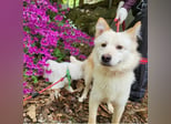 Royce wurde schätzungsweise im September 2021 geboren und ist ein männlicher Jindo-Mischling, der im November 2021 in unser Tierheim aufgenommen wurde. Er und sein Bruder Bentley, benannt nach Autos, wurden im Alter von nur zwei Monaten ohne ihre Mutter auf der Straße gefunden. Die beiden waren die einzigen beiden, die da waren, also wurden sie in den Unterschlupf gebracht. Die beiden Car-Geschwister waren super, flauschig und mollig, als sie das erste Mal zu uns kamen, und seitdem sind sie in ihr Fell und ihre Döbel hineingewachsen! Sie sind ziemlich schüchtern, da sie die neue Welt ohne ihre Mutter an ihrer Seite erkunden müssen, aber sie lernen langsam bei uns, dass es schön ist, zu kuscheln und draußen zu gehen. Royce ist das braungebrannte Geschwisterkind mit seiner schwarzen Nase und den traurigen Augenbrauen! Er wächst in sein Fell hinein und scheint auf dem besten Weg zu sein, ein langhaariger Hund zu werden! Royce lernt schnell und genießt es sogar, mit den anderen Welpen und seinem Bruder im Laufstall zu spielen!