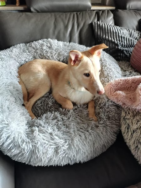 Sie wurde etwa am 9. Juni 2025 in Rumänien geboren und ist mit ca. 42 cm Schulterhöhe und 11 kg eine zarte, schlanke junge Hündin mit einem großen Herz. Seit kurzer Zeit lebt sie auf ihrer Pflegestelle und hat dort bereits alle im Sturm erobert.