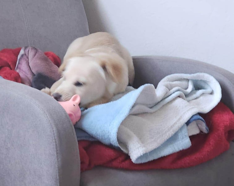Wie es für einen Welpen typisch ist, muss sie das Alleinbleiben sowie die ersten Grundkommandos noch lernen und benötigt hierbei eine geduldige und liebevolle Anleitung.