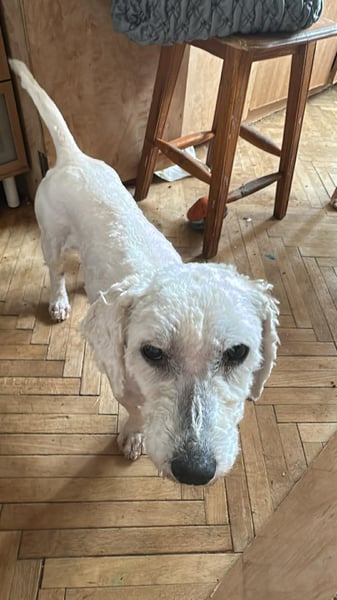 Mein Fell war verfilzt und schmutzig, doch nach meinem ersten Frisörbesuch kam ein kleines, weißes, hübsches Hundefräulein zum Vorschein