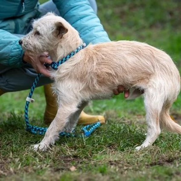 Koriander kam mit drei weiteren Hunden von einem verlassenen Gelände in unser Partnertierheim Allatbarat in Ungarn. Warum die Hunde dort waren, wissen wir leider nicht.