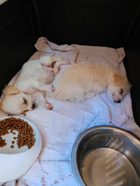Eine Dame hat im Sommer in einer zugebundenen Tasche 5 Hundewelpen und 3 Katzenbabys gefunden. Sie alle waren erst wenige Tage alt und wurden auf dem Feld zum Sterben zurückgelassen.