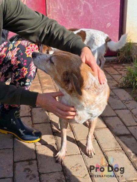 Toffee ist mit ihren Geschwistern ins Shelter gekommen, weil ihr Herrchen verstorben ist. Toffee ist mit ihren 10 Jahren gut drauf und zeigt sich offen und liebevoll gegenüber Menschen. Mit anderen Hunden zeigt sie sich ebenfalls verträglich. Alles in allem ist Toffee eine wunderbare Hündin. Nun fehlt lediglich noch ihr eigenes Zuhause, wo sie noch ein paar schöne Jahre erleben darf.
