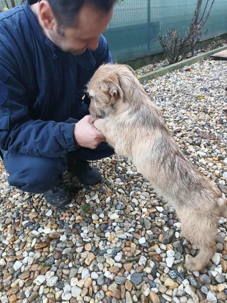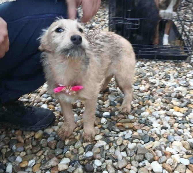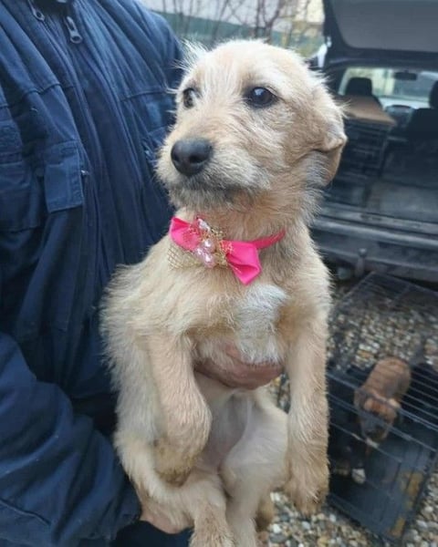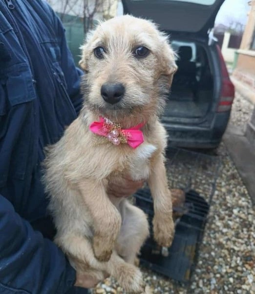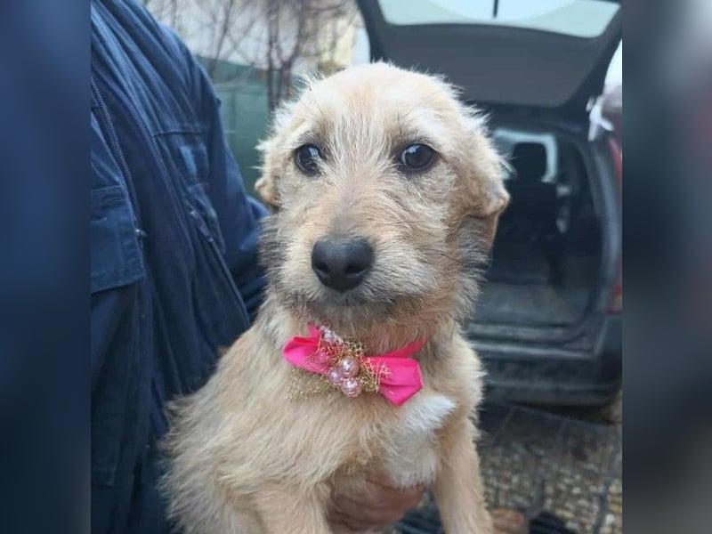 Unsere rumänische Tierschützerin war im November 2025 unterwegs und hörte mitten im Nirgendwo Schreie von Hunden. Sie hat natürlich sofort nachgesehen und fand Karma und ihre Schwester, ganz alleine, ohne ihre Mama. Mit großer Wahrscheinlichkeit wurden sie dort ausgesetzt.