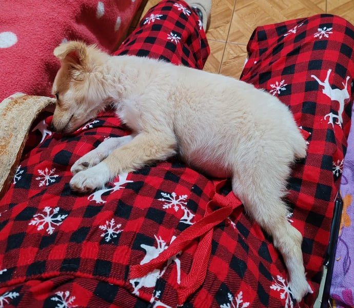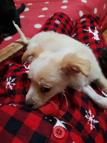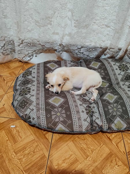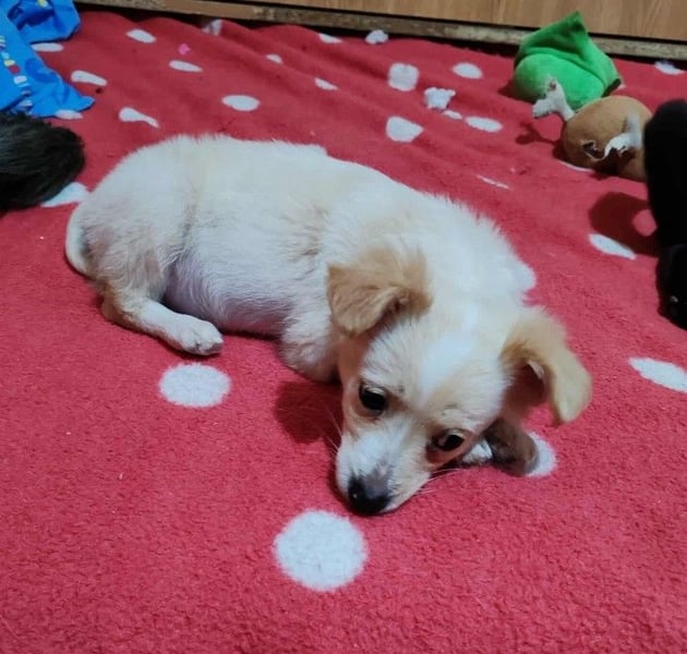 Ein Mann hat Maggie auf der Straße gefunden und sie mit nach Hause genommen. Mit großer Wahrscheinlichkeit wurde sie ausgesetzt, da sie mutterseelenalleine unterwegs war.