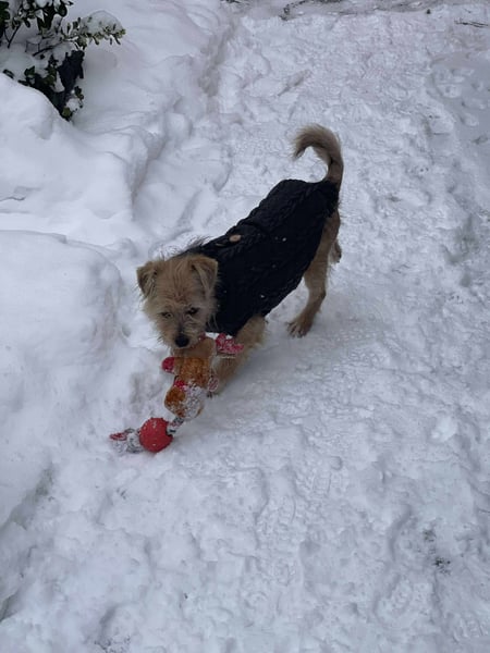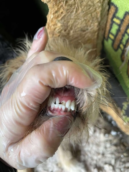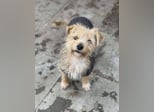 Es wird vermutet, dass sie einen Besitzer hatte, der sie nicht mehr wollte. Mit großer Wahrscheinlichkeit wurde sie aus einem fahrenden Auto geworfen, wegen der Prellungen. Auch hat die kleine Hundedame einen gebrochenen Vorderzahn.