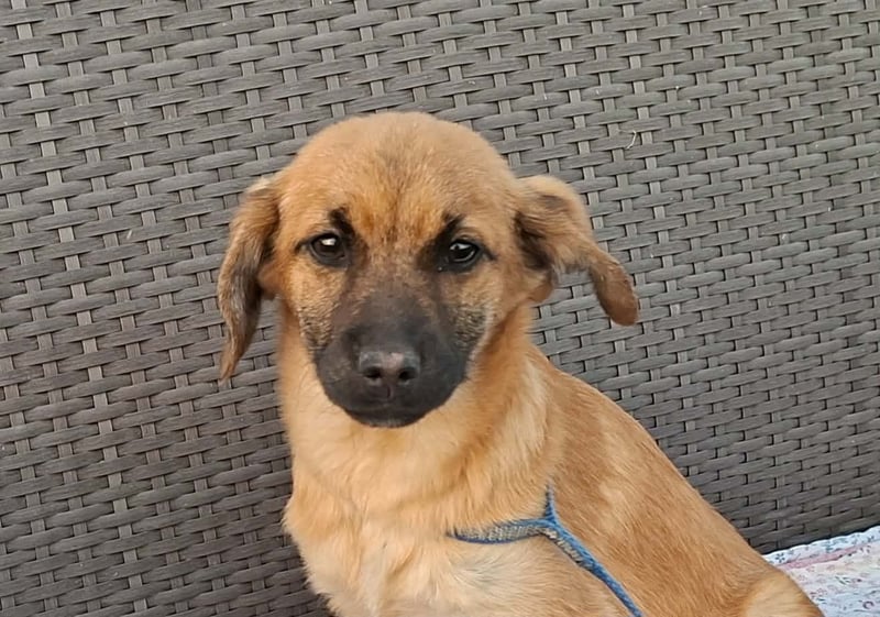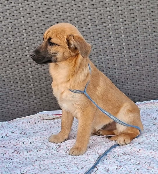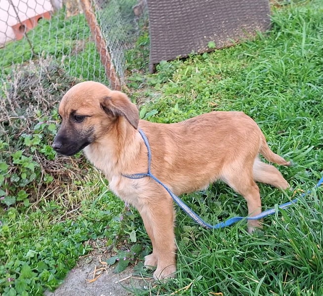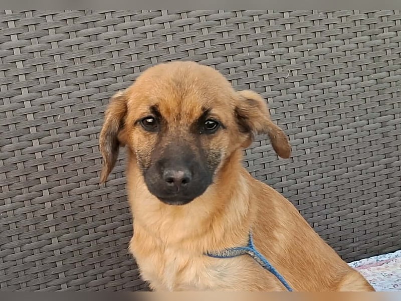 Keno ist welpentypisch verspielt, neugierig und erkundet gerne die Welt. Er wird voraussichtlich mittelgroß (ca. 40-45 cm). Menschen gegenüber ist er anfangs etwas zurückhaltend, taut aber nach kurzer Zeit auf und zeigt sich dann lieb, tollpatschig und verschmust.