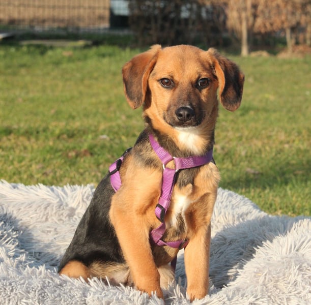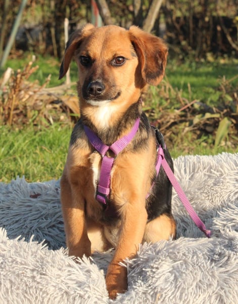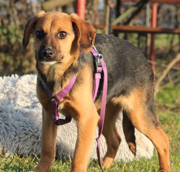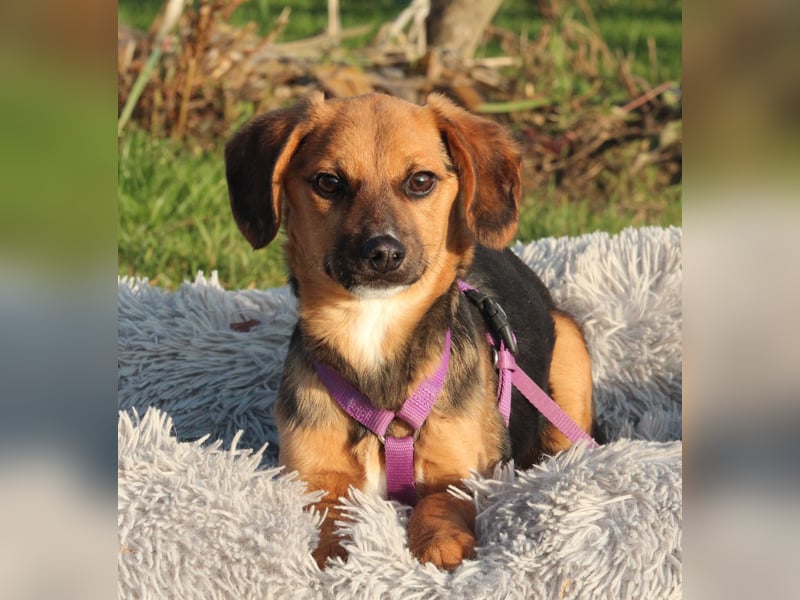 Hallo ihr lieben Zweibeiner, ich bin Dobina, eine charmante Hundedame mit einem sanften Herzen. Geboren wurde ich laut Tierarzt im Juni 2025, und mit meinen 30 cm Schulterhöhe bin ich eine handliche Begleiterin fürs Leben. Ich bin zwar schon 7 Monate alt, doch großartig wachsen werde ich nicht mehr. Meine kurzen Beinchen tragen mich trotzdem fröhlich überall dorthin, wo ihr auch seid – denn nichts ist mir wichtiger, als meinen Menschen nah zu sein und gemeinsam durchs Leben zu gehen. Mein Wesen ist ruhig, freundlich und ausgeglichen. Ich bin keine Draufgängerin, sondern eine liebe Seele, die Nähe, Sicherheit und Geborgenheit schätzt. Schon jetzt bringe ich ein wenig Lebenserfahrung mit und weiß, wie schön es ist, ein treues Herz an seiner Seite zu haben. Mit anderen Hunden verstehe ich mich gut, und auch mit Katzen komme ich problemlos zurecht. Das Hunde-1×1 kenne ich noch nicht vollständig, doch ich bin aufmerksam, klug und sehr lernbereit – mit liebevoller Anleitung und etwas Geduld werde ich das sicher schnell lernen. Kinder sollten schon größer sein und respektvoll mit mir umgehen, damit ich mich sicher fühle. Dann können wir ganz bestimmt wunderbare Freunde werden. Vielleicht spürst du ja beim Lesen schon, dass wir gut zusammenpassen könnten Ich warte darauf, mein Herz zu verschenken – vielleicht ja an dich.