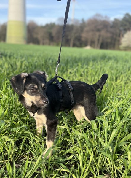Kurti ist ein typischer Welpe: verspielt, neugierig, verschmust und voller Lebensfreude. Er liebt es zu spielen, die Welt zu entdecken und danach gemütlich zu entspannen. Kinder mag er sehr, und auch mit anderen Hunden und Katzen versteht er sich gut. Bei fremden Situationen im Freien ist er noch etwas unsicher das ist welpentypisch und mit etwas Geduld leicht zu überwinden. Stubenrein ist er noch nicht, lernt aber schnell.
