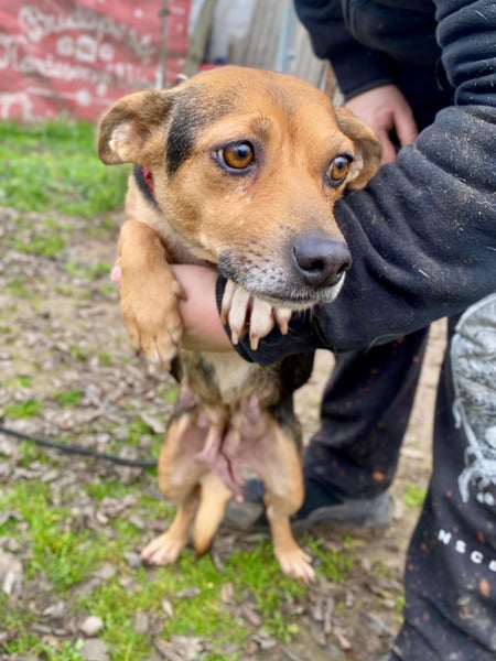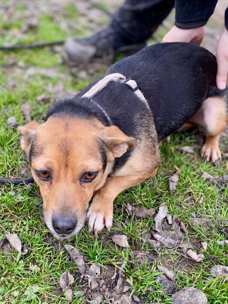 Im Umgang mit Berührungen, insbesondere am Rücken, ist Adél noch unsicher und zeigt hier Zurückhaltung – vermutlich aufgrund negativer Erfahrungen in der Vergangenheit. Beim Spielen und Toben ist sie eher vorsichtig und beschwichtigend, insgesamt aber eine freundliche, offene Hündin mit viel Lernpotenzial.