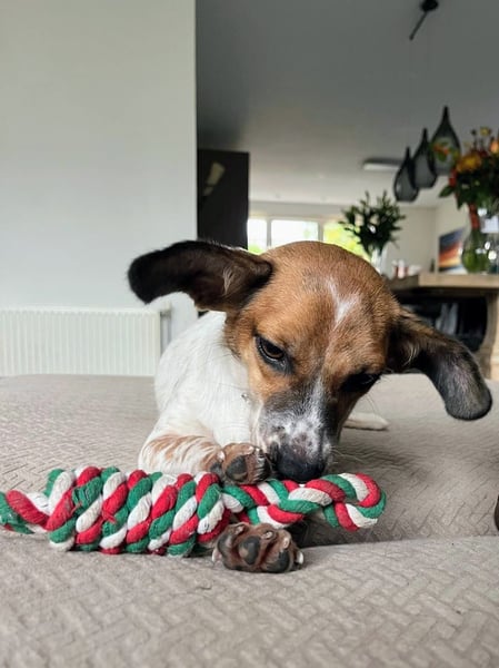 Bibi ist ein wunderbar unbeschwerter Hund. Sie ist erst seit kurzer Zeit in den Niederlanden (bei einer Pflegefamilie) und macht sich unglaublich gut. Sie ist wahnsinnig sozial zu allen Menschen und Hunden, ob groß oder klein. Sie legt sich für Streicheleinheiten hin und sitzt gern mit dir auf dem Sofa. Sie spielt großartig mit den kleinen und großen Hunden in ihrer Pflegefamilie. Sie versteht die Hundesprache perfekt. Sie liebt es, so viele Spielzeuge wie möglich in ihrem Körbchen zu sammeln, und kann sich damit wunderbar selbst beschäftigen. Bibi ist ein unglaublich zufriedener Hund und lässt sich nicht leicht ablenken. Fernseher, Radio, Staubsauger, Besucher oder andere Hunde – sie liebt einfach alles. Bibi ist ein sehr fröhlicher, gut gelaunter Hund, der jedem ein Lächeln ins Gesicht zaubert.