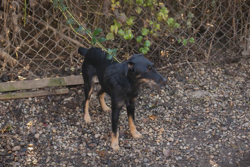 Mia lebte in der Nähe einer Müllkippe. Eine Frau bemerkte dies und es gelang ihr, Mia einzufangen und ins Tierheim zu bringen. Hier benimmt sich Mia, entsprechend ihre Rasse, aktiv, aufgeregt und neugierig. Voller Leidenschaft und Unternehmungsgeist ist Mia in ihrem Gehege unterwegs. Am Zaun trifft sie sich gerne mit den Hunden aus den Nachbargehegen. Das macht Spaß und trägt zur Sozialisierung bei.