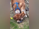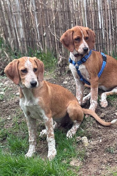 Die Mama ist eine ca. 40 cm große, sanfte Mischlingshündin, der Papa ist unbekannt. Die Mama und ihre zwei Kinder wurden im Wald von Gassigehern glücklicherweise gefunden.