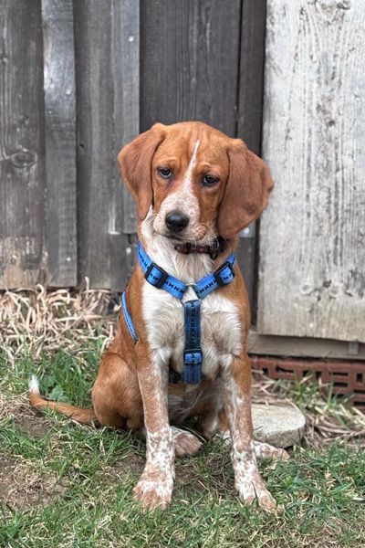 An der Leine laufen wird gerade fleißig geübt – okay, das läuft noch ein bisschen chaotisch ab. Aber die Pflegemama übt täglich am nahegelegenen Weiher.