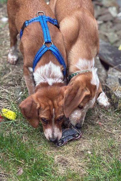 Manchmal drängelt sich ihre Schwester dazwischen, und dann gibt sie ganz schnell nach und verzieht sich kurz. Sie braucht einfach ein bisschen mehr „Unterstützung“ von uns Menschen oder einem Ersthund. Aber das wird schon, denn sie ist neugierig und will die Welt erkunden.