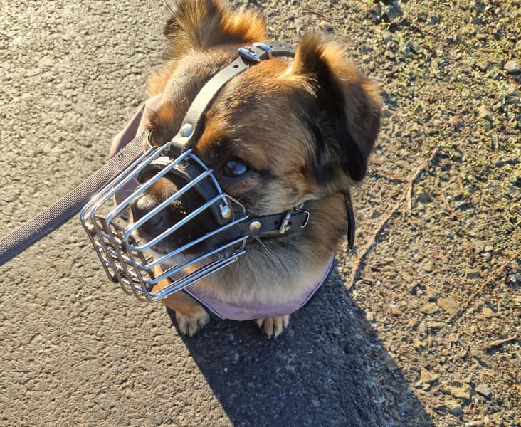 Sie hat auch ein Problem mit meinen Hunden! Am Anfang hat sich mein Rudel nur bewegt und schon ist sie beißend auf sie zu. Damit das nicht mehr passiert, trägt Mila auch zuhause einen Maulkorb.