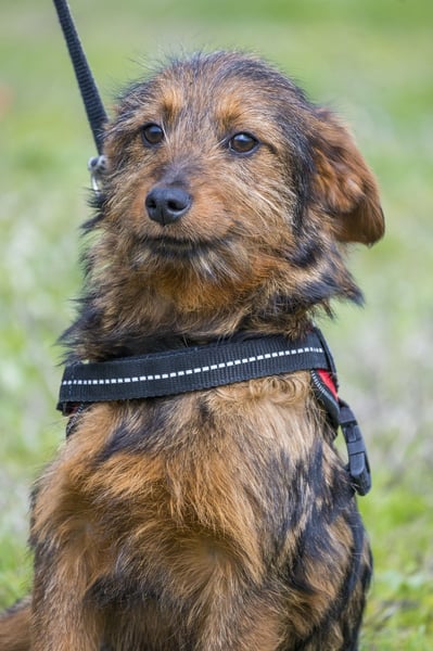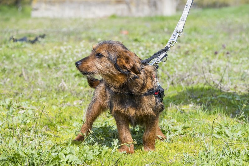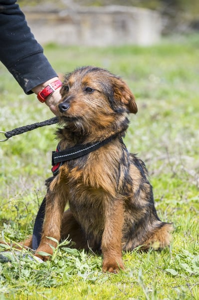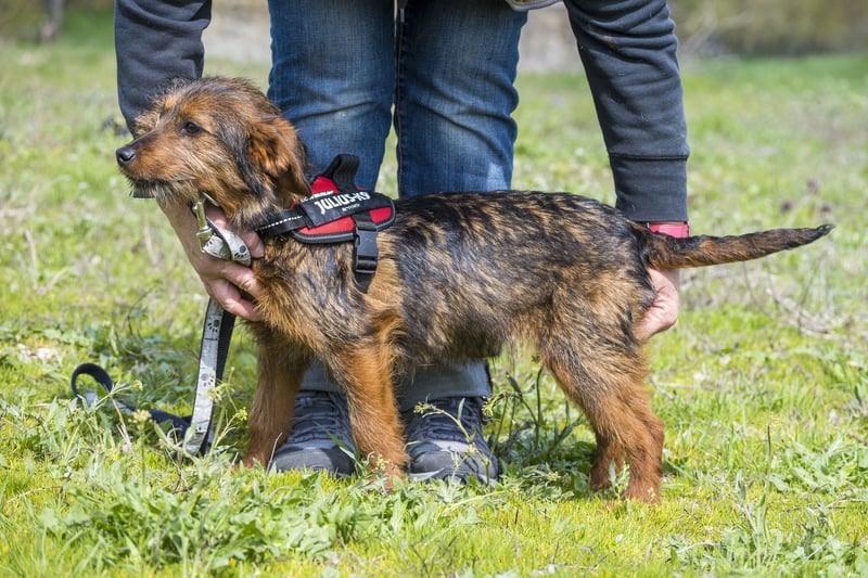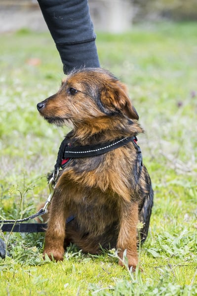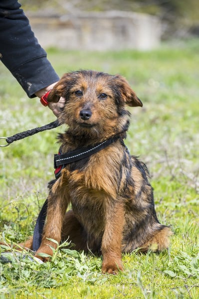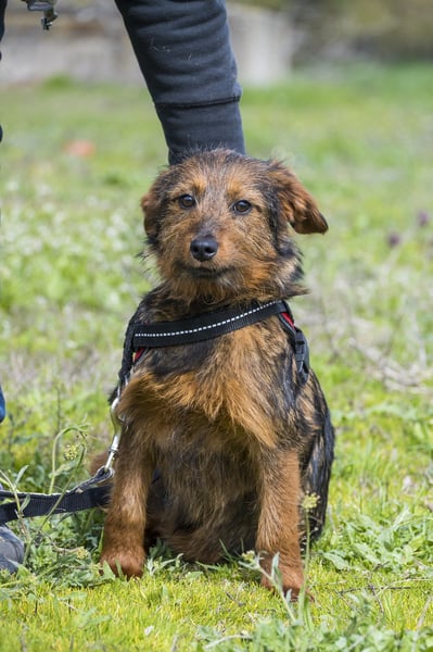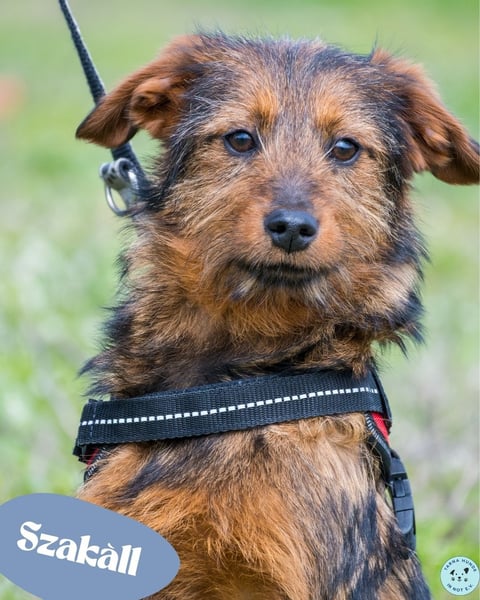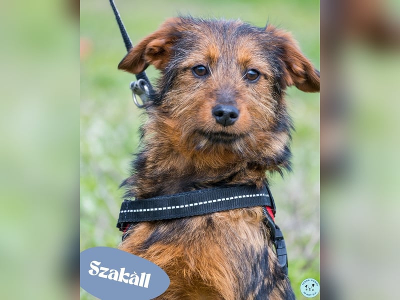 Szakall ist ein etwas vorsichtiger, aber unglaublich anhänglicher junger Rüde. Auch er ist fast 6 Monate alt und wird klein bleiben.