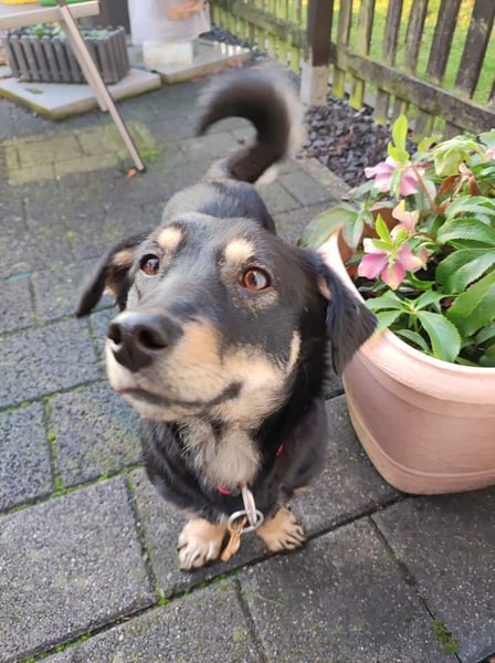 Mimmi freut sich über Besuch in ihrer Pflegestelle in Heinsberg oder nach Absprache samstags auf unserem Schutzhof in Rösrath.