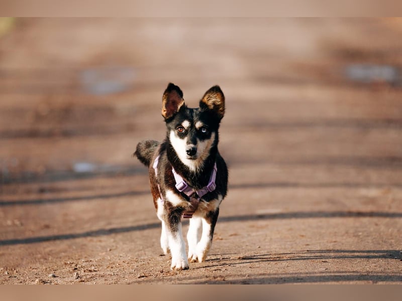 Ketty liebt Futter über alles und ist hochmotiviert, dafür zu arbeiten – eine wunderbare Grundlage fürs weitere Training. Mit erhobenem Schwanz geht sie selbstbewusst durchs Leben, als wäre sie bereit, die Welt zu erobern. An der Leine läuft sie bereits gut, besonders mit Geschirr fühlt sie sich sicher und bewegt sich entspannt.