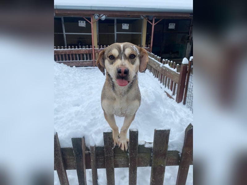 Dion ist ein zauberhafter kleiner Hundemann. Der schöne Junghund ist tagelang in Tiszaalpár auf der Straße herum gestreunert, dort ist er Kindern hinterher gelaufen und bis in die Schule gefolgt.