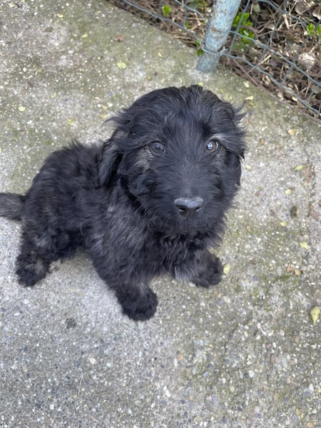 Jake hatte bereits einen Besitzer. Der Mann hat viele Hunde zu versorgen und bat unsere rumänische Tierschützerin Monika um Unterstützung. Die Mama von Jake hatte bereits im August 2025 Alvin und Julia geboren.