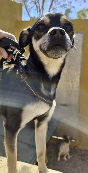 Donald (4630) Mix Rüde, geb. am 04.04.2021, hat eine Schulterhöhe von 33 cm und wiegt 5,5 kg.